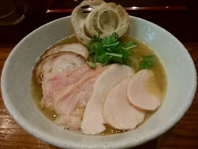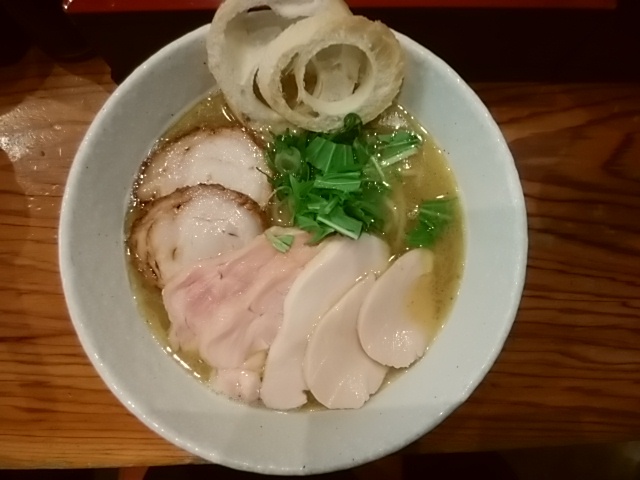 そして、少しタイムラグがあって、また、男性スタッフの人から供されたのが、一杯目の本日限定の「丸鶏中華そば」が着丼したときに「塩かけ」から変更してもらったデフォルトの「塩らーめん」!