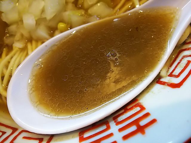 一昨日、食べた「中華ソバ」に比べるとスープの色が黒みがかってて、一昨日、こちらの店の常連さんに味見させていただいた「煮干中華」っぽい色合い…