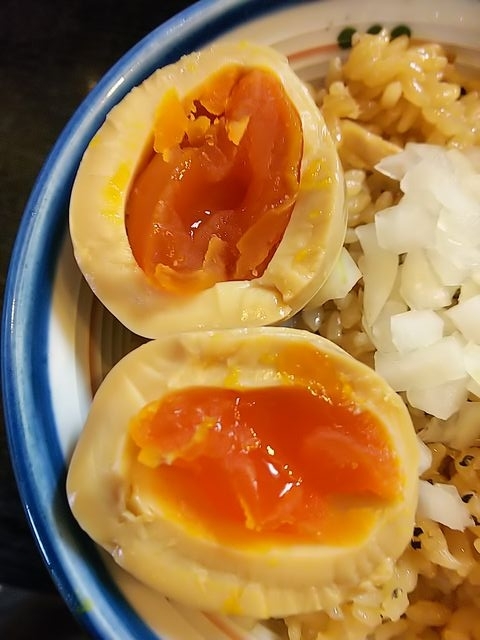 さらに、いつものように、トッピングの「味玉」とサイドメニューの「炊き込みご飯」の食券も買って!
