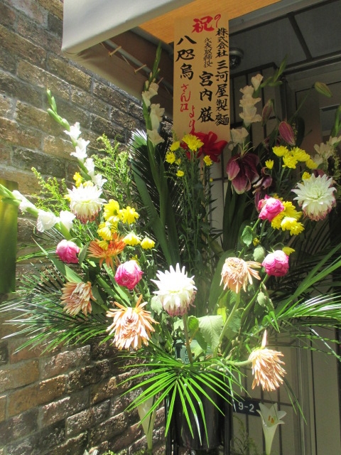 ラーメン関係では、「三河屋製麺」からのお花があって!