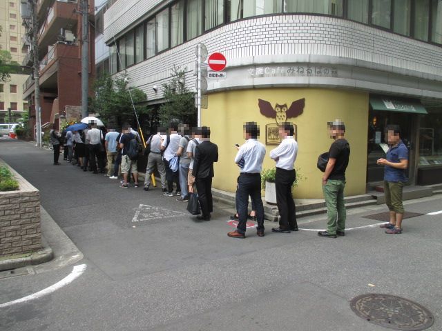 ちょうど食べ終わったお客さんが次々に出てくるところで…