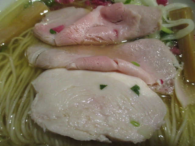 特に、真空低温調理されたと思われる鶏ムネ肉のレアチャーシューは、分厚くて!
