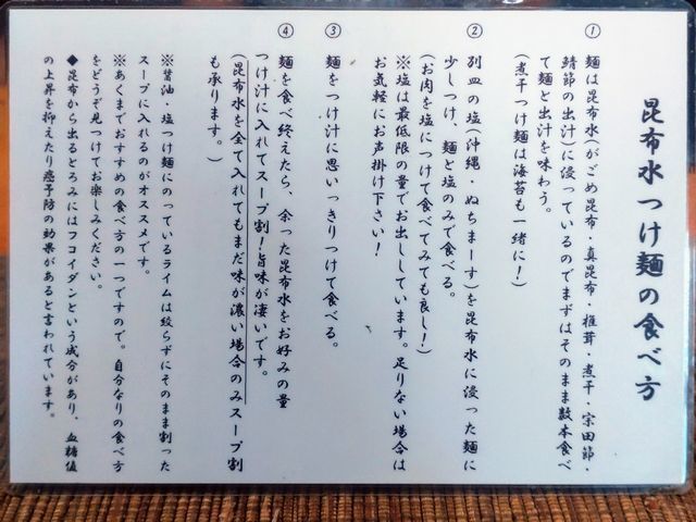 まずは、卓上にあった「昆布水つけ麺の食べ方」に書かれていた…