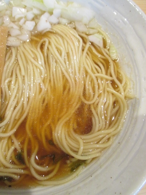 まずは、煮干し出汁のスープそのものの色といった感じのスープをいただくと…