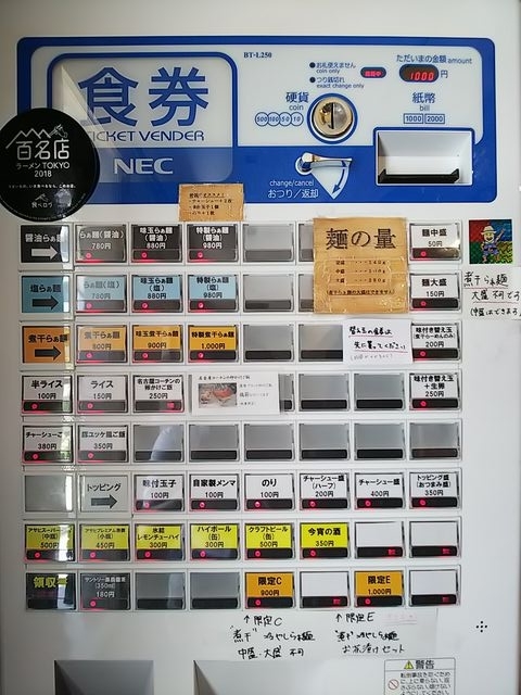 券売機に千円札を差し込んで、「限定E」のボタンを押して、買い求めたのは「煮干冷やしらぁ麺」と「お茶漬けセット」の食券!