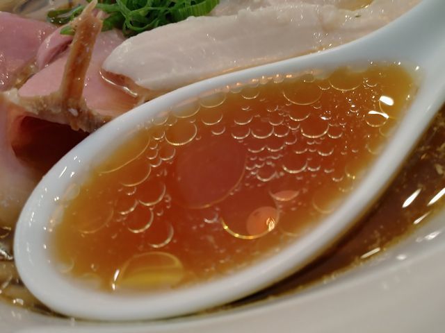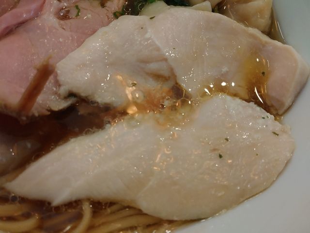 しかし、鶏ムネ肉のレアチャーシューは、肉厚のもので、やや、カタめに感じられる変わった食感のもので…