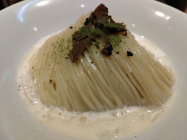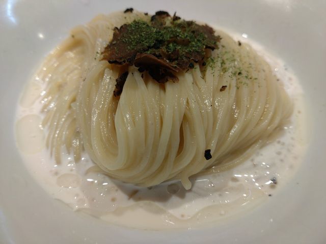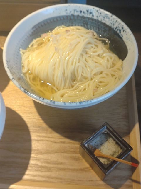 次に豆乳生クリーム昆布水に浸かった麺に塩甕のトリュフ塩をパラッと掛けてみると…