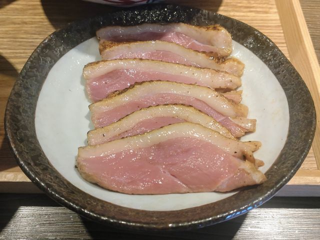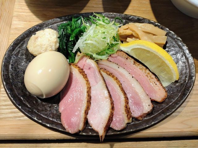 淡いピンク色した鴨もものレアチャーシューも、火入れはバツグンで