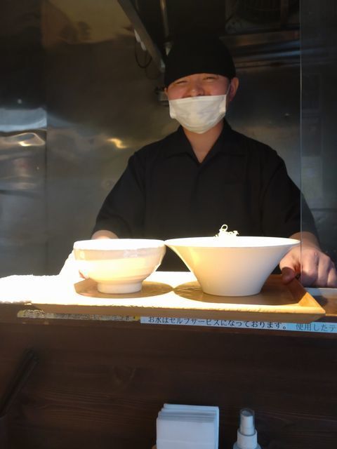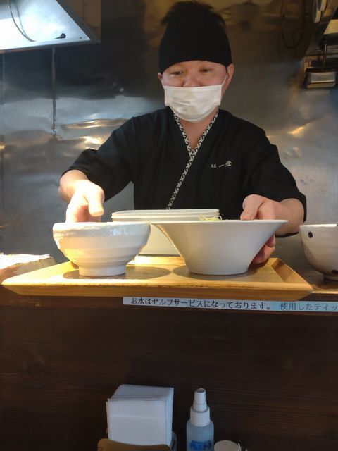カウンターの上に食券を上げて待つ…