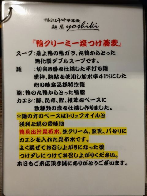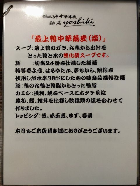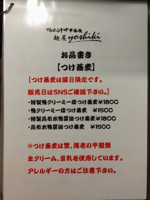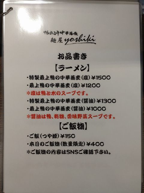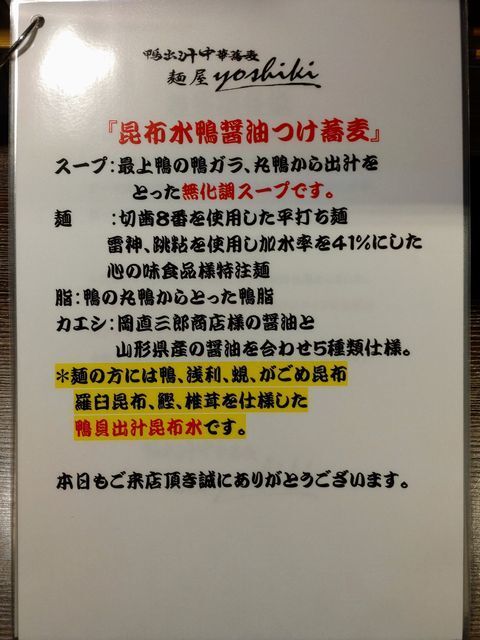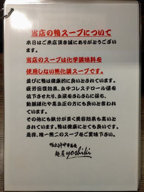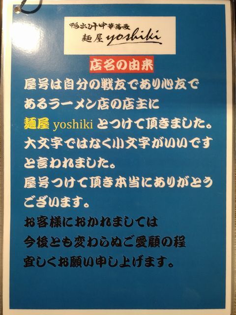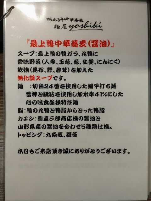 鴨出汁中華蕎麦 麺屋yoshikiです。