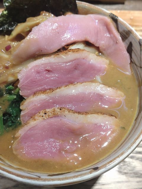 めっちゃ鴨チャーシューが多くて、完全に「鴨チャーシュー味噌そば」状態だったけど