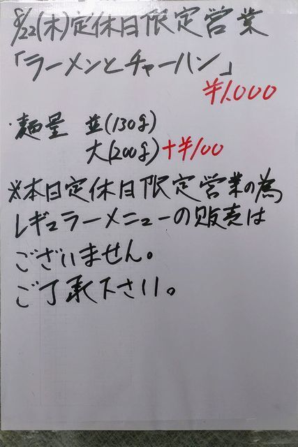 並(150g)/中(200g)…100円/大(250g)…200円