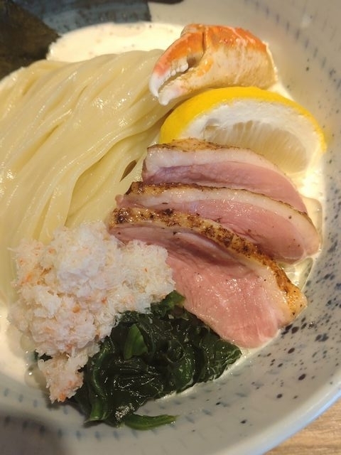 今週は3日の火曜日に、まず、「鴨と蟹の昆布水味噌つけ麺」!