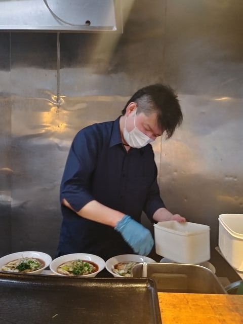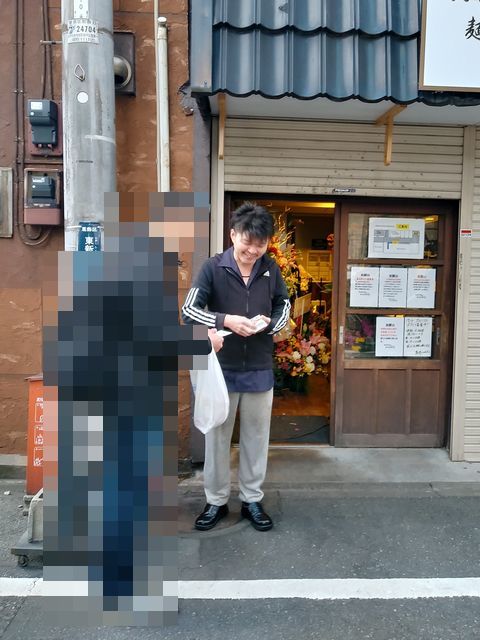 すると、食べ終わったお客さんが3人出てきたところで、阿部店主が店の中から出てくると…