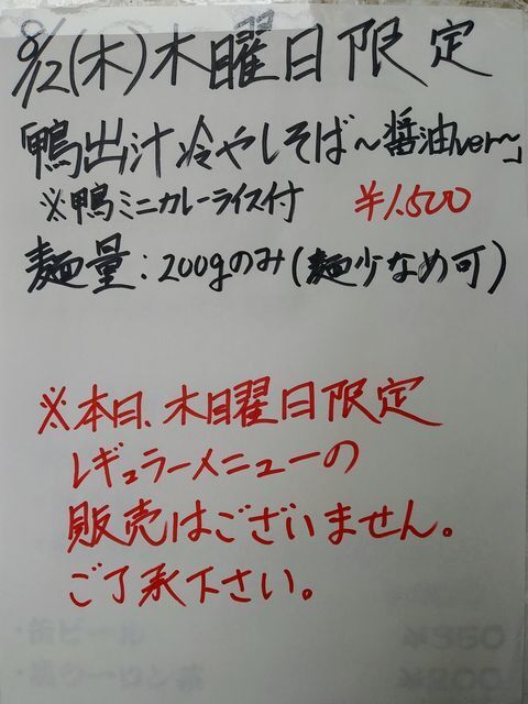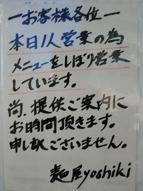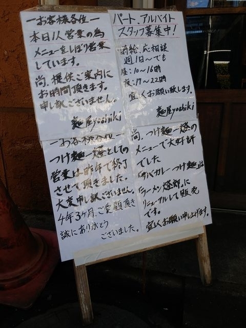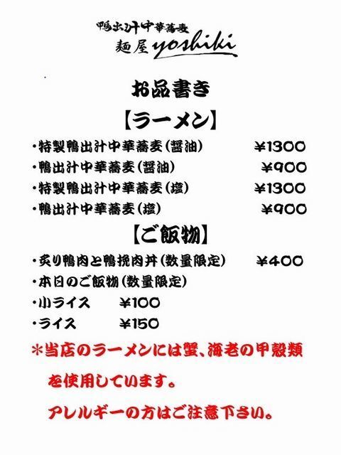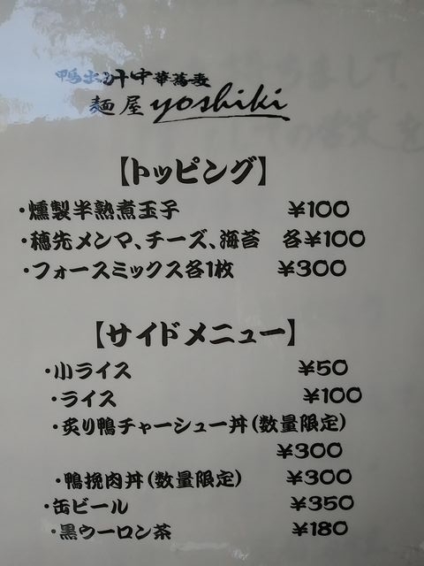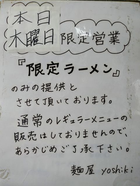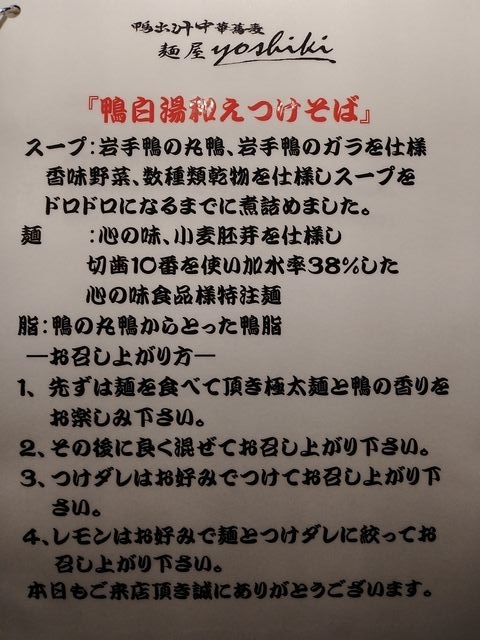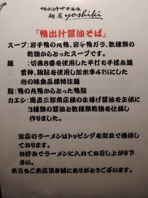鴨出汁中華蕎麦 麺屋yoshiki【壱参】 ~不定期ながら木曜日の定休日に限定メニューのみで営業する鴨出汁の中華蕎麦、つけ蕎麦の専門店で本日限定の「背脂煮干しラーメン」~