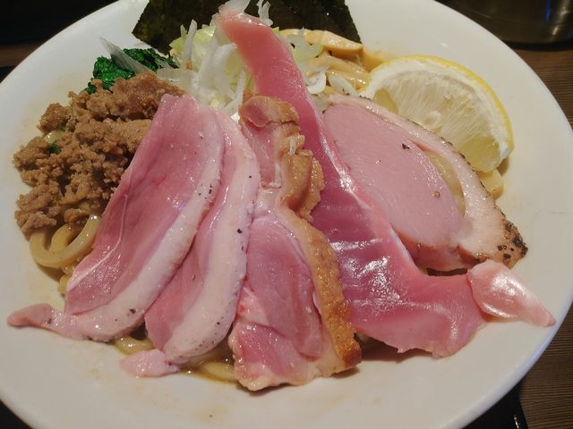 「岩手がも」の低温調理された鴨ロースのレアチャーシューは火入れが絶妙で♪