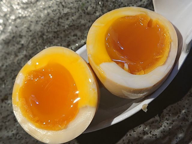 味玉と穂先メンマを鴨出汁のうま味いっぱいのつけ汁に浸して食べると…