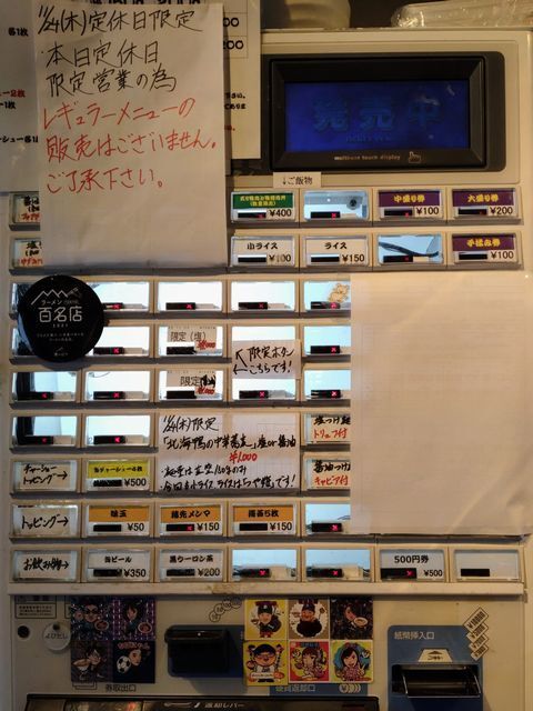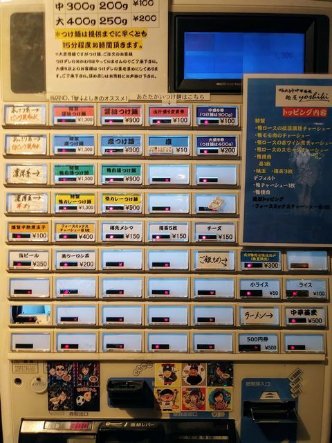 中盛り券…100円/大盛り券…200円/手もみ麺変更…100円
