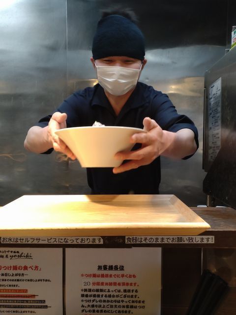 並んでいた先頭から私までの6人のお客さんの食券を回収していって…