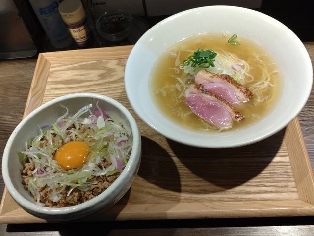鴨出汁塩蕎麦と鴨挽肉丼…1500円