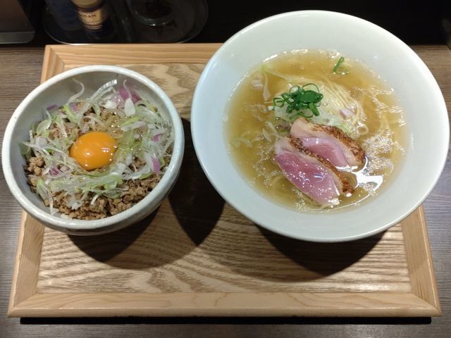 鴨出汁中華蕎麦 麺屋yoshiki【壱四】 ~2020年1月10日にオープンして開業3周年を迎えた店で「3周年特別企画」限定メニューの「鴨出汁塩蕎麦と鴨挽肉丼」のセット~
