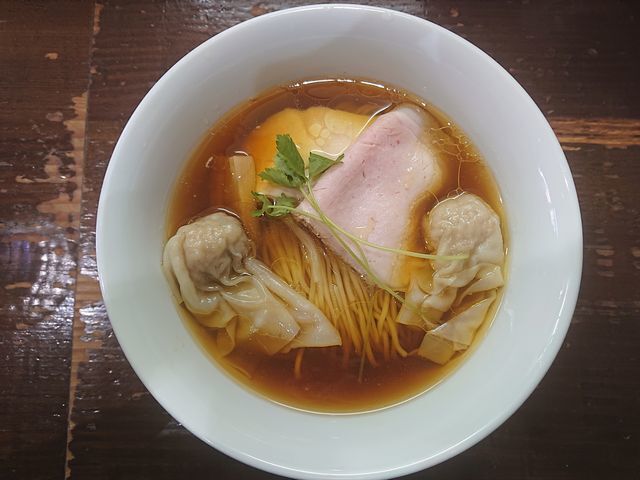 鶏油がキラキラと煌めく黄金色したスープをいただくと…