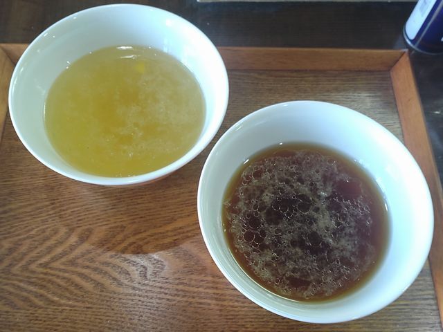 今日はハプニングから、この「塩」と「醤油」ダブルのつけ出汁の食べ比べができて、マジでよかった