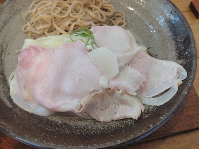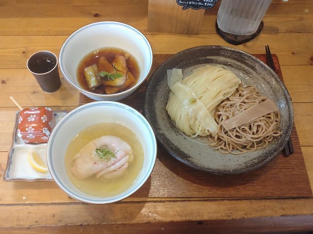 地鶏と豚と動物系の旨味にホタテの貝出汁に昆布出汁の旨味を感じるつけ出汁には、こっちの方が断然合うし、めちゃめちゃ美味しい