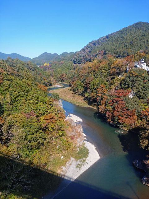 途中、多摩川に掛かる神代橋から下流の紅葉を見ながら橋を渡って…