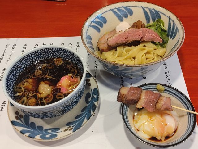 さらに、別椀に「奥久慈卵」の温玉が入り、鴨の串焼きが載せて出された…