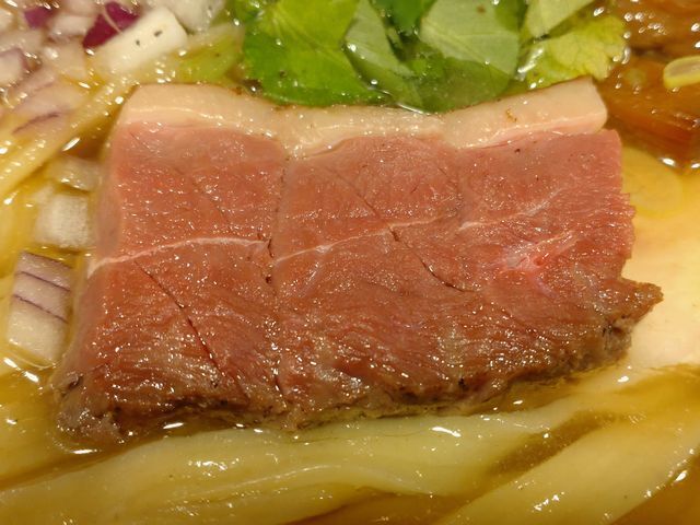 東京・木場の『麺屋ルリカケス』の6月23日の2周年記念限定の「特製蛤・真鯛と地鶏の塩そば」にトッピングされていた「マグレ・ド・カナール」のロティも、かなり美味しい逸品だったけど