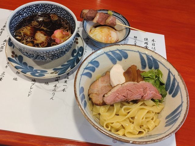 彩りも鮮やかで、美しいビジュアルの醤油つけ麺✨