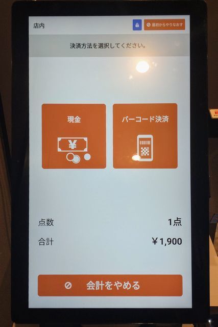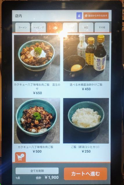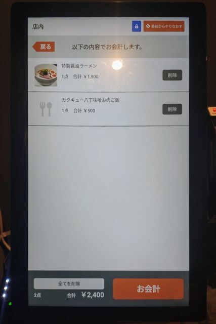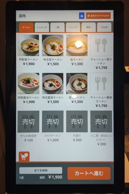 デジタルなキャッシュレスの券売機で食券を購入して席へと着いていく。