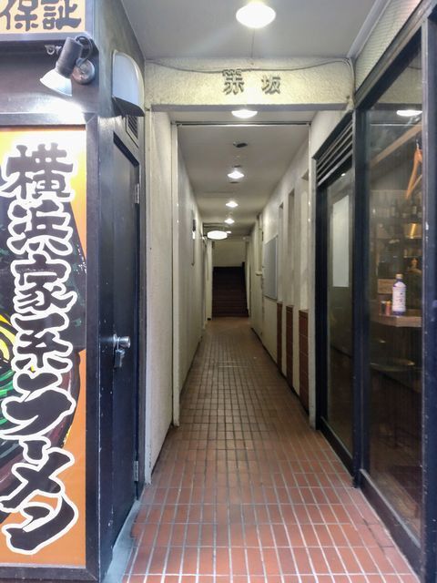 店に入るには、1階に入居している『横浜家系ラーメン一刀家』の右にある狭い通路を通って…