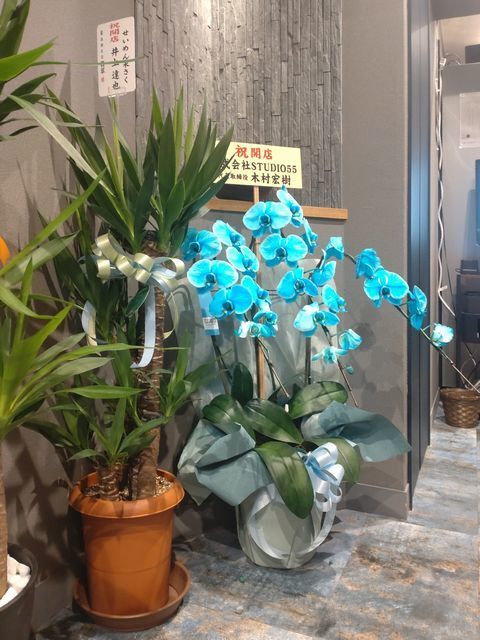 さらに、開店祝いの花に観葉植物が飾られていて!
