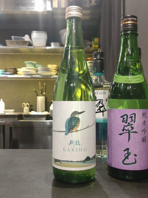 目の前にはカワセミ(翡翠)が描かれたラベルの日本酒が