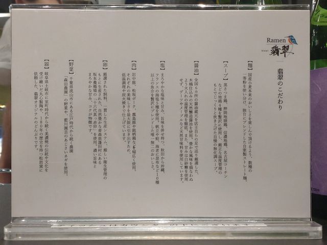 卓上の「翡翠のこだわり」と書かれたPOPに書かれていた…