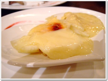 本当はジャガイモにかけるらしいのですが、スイスと違い日本のジャガイモは味が弱いので、薩摩芋を使ってるらしいです。