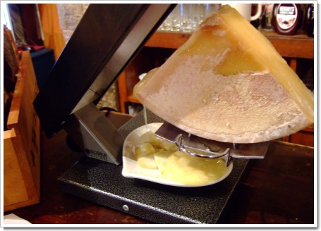 スイスの「ラクレット」というチーズらしいです。あのハイジがおじいさんと食べていたチーズのひとつがこれだったらしい。食べたかったんだよな~。
