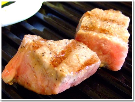 目の前でジュージューいいながら、こんがり焼き目の付いた肉。立ち上る香りに惑わされ野獣化していく自分を感じます(笑)。適度に厚みのある肉を好みの焼き加減で食えるのは良いですね。