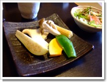 このセットには「焼き用野菜」と「ミニサラダ」、「ご飯と味噌汁」が付きます。