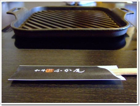 テーブルに仕込まれた電磁調理器の飢えにはステーキ用の鉄板がセットされました。しゃぶしゃぶやすきやきも同じようにテーブルの電磁調理器を使って自分で調理するスタイル。自分の好みやペースで調理できるのは楽しいしありがたいのですが、電磁調理器がテーブルにひとつししかないのでステーキとしゃぶしゃぶを同時にという贅沢かつ無謀な食べ方ができないのが残念です(笑)。