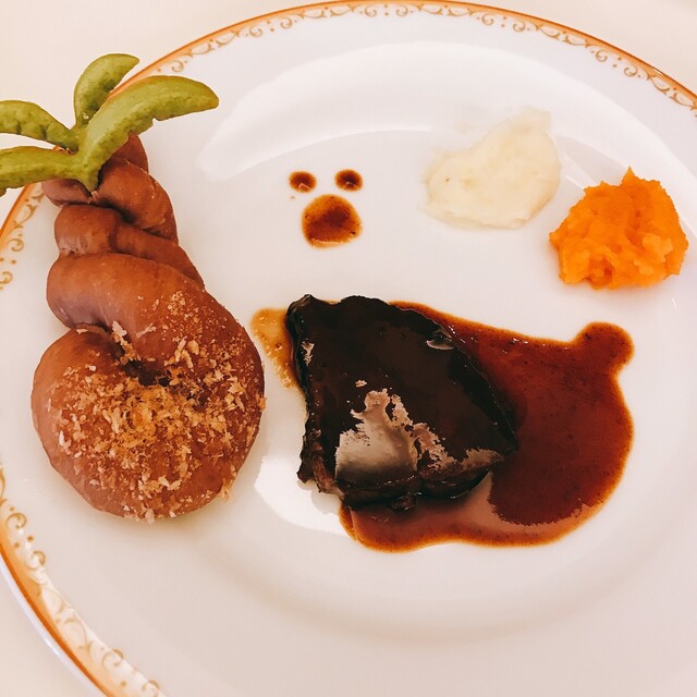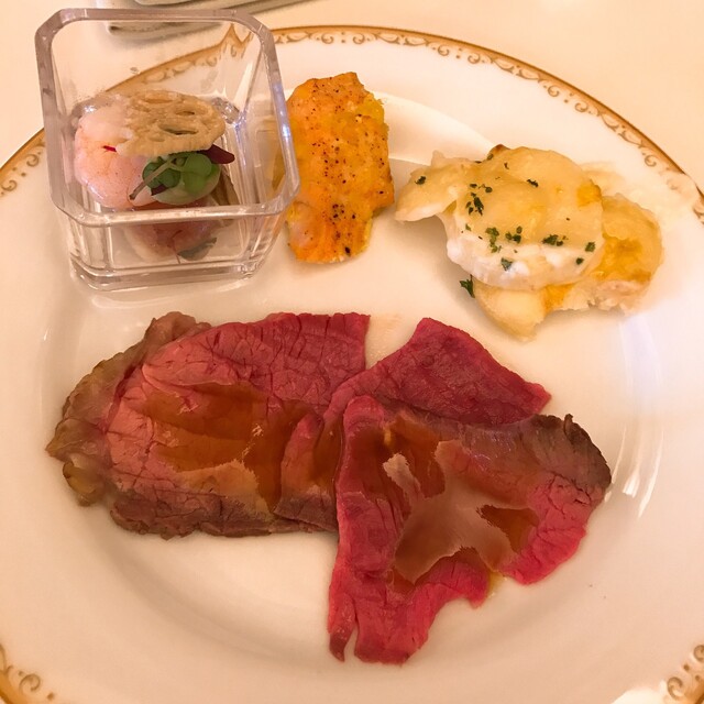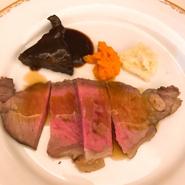 メイン料理は、ローストビーフ、鯛の葱生姜蒸し、牛の赤ワイン煮。