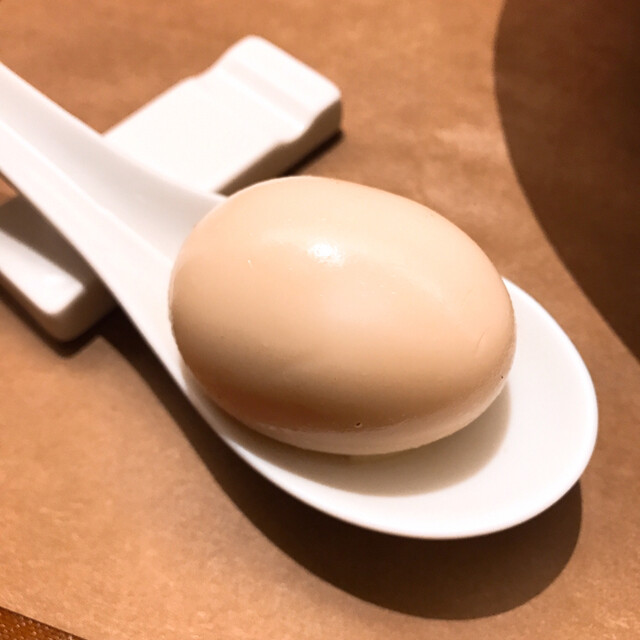 タレ不使用のスープは、透き通っていて、様々な材料からの出汁がバランスよく合っていて、かなり美味しい。ハムとかからの塩分かな。
