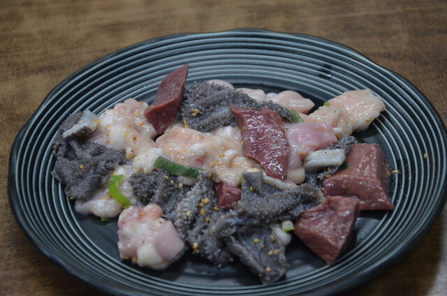 ミックスホルモンは、小腸、小袋、センマイ、ハツのミックスで、どれも新鮮、食感良く美味しい。