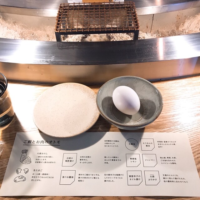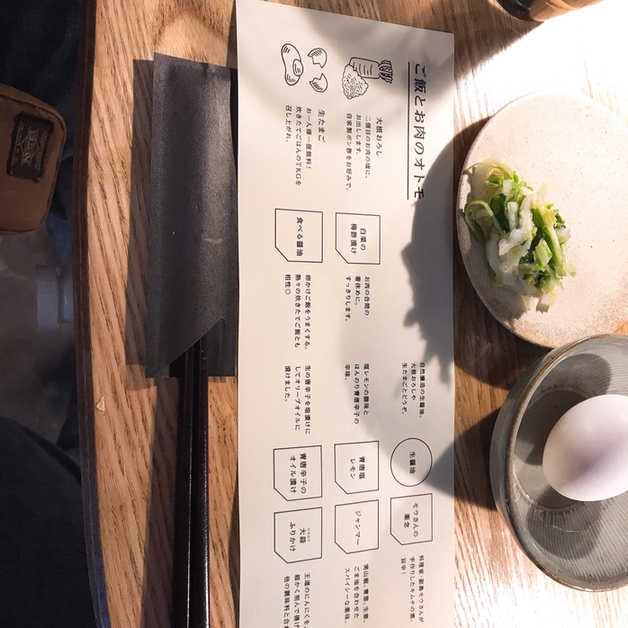 ハンバーグが焼けるまで、食べ方や薬味の説明読んで待ち。