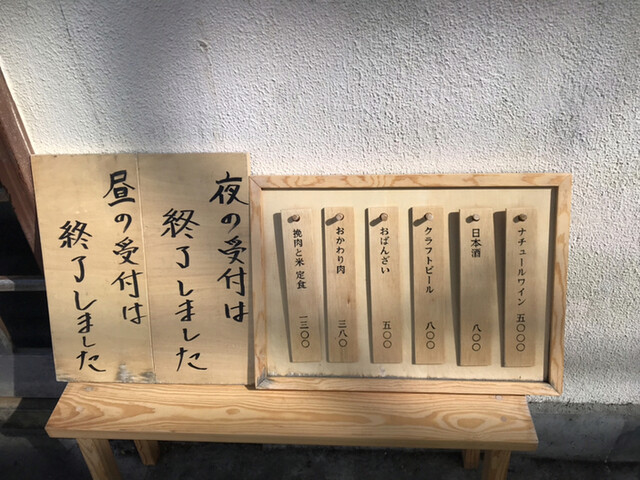 90gの焼き立てハンバーグ3個、炊き立ての羽釜ご飯(お代わり無料)、味噌汁、生卵1個、各種薬味で1300円の定食と、ドリンク、お惣菜1品のみのお店。
