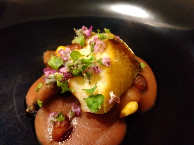 すき焼き、湯葉と山椒のソース
