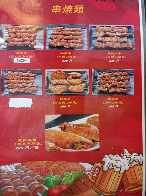 串焼きはここの羊は唐辛子がたっぷり付いてくるタイプなので「できるだけ辛くしないで」とお願いしてマイルドなものを提供してもらいました。