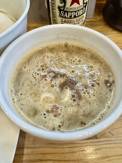 鶏白湯つけsoba唐揚げ2個瓶ビール